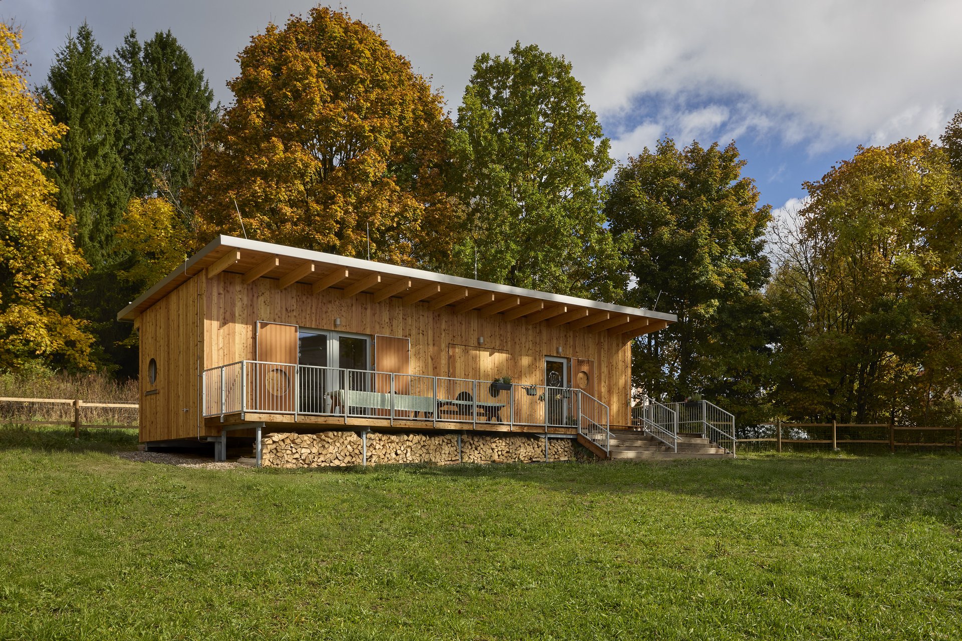 Jde o jednoduchou dřevostavbu, která zahrnuje základní zázemí pro 18 dětí. Vnitřní prostor je propojený s terasou a terasa se zahradou. Podélný objekt je situován při kraji louky, aby se nenarušil výhled z veřejné cesty. Zároveň je orientován po vrstevnici a založen bodově, aby se snížil zásah do terénu. Stavbu se podařilo díky nasazení všech, co se na přípravě podíleli, včas dokončit i vybavit a 1. září mohly nastoupit první děti.